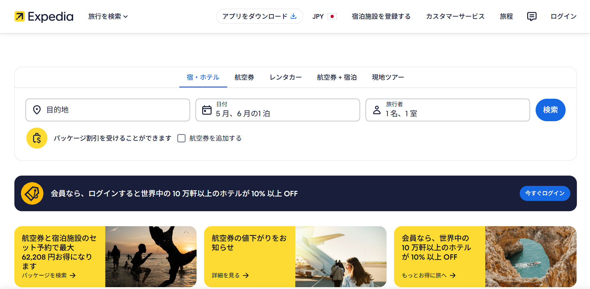 画像引用:トップページ|エクスペディア