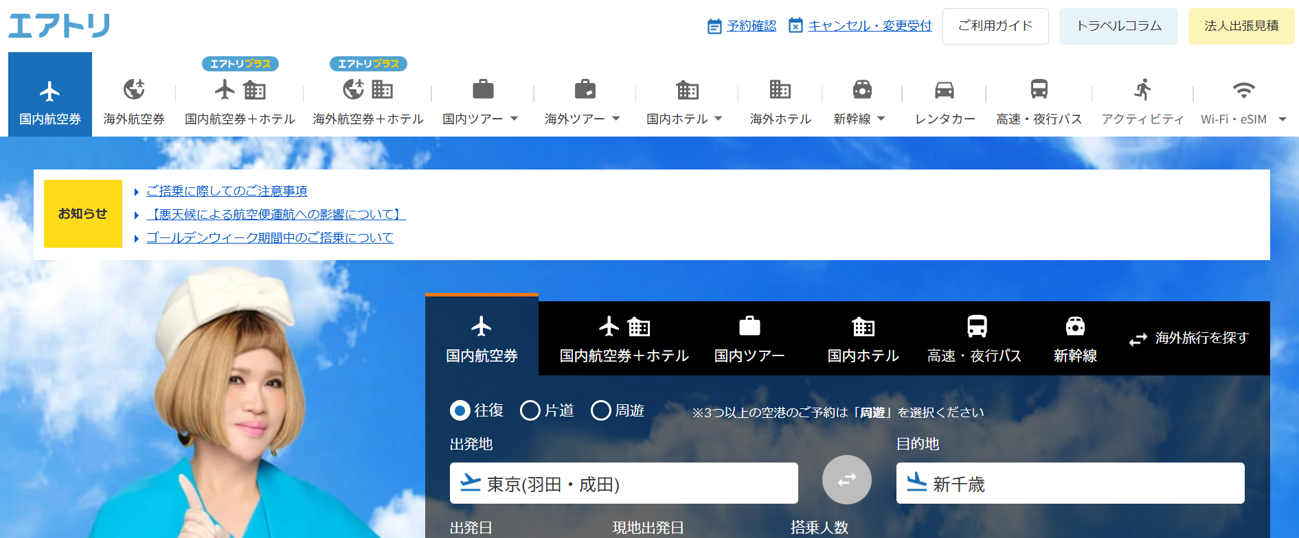 画像引用:トップページ|エアトリ