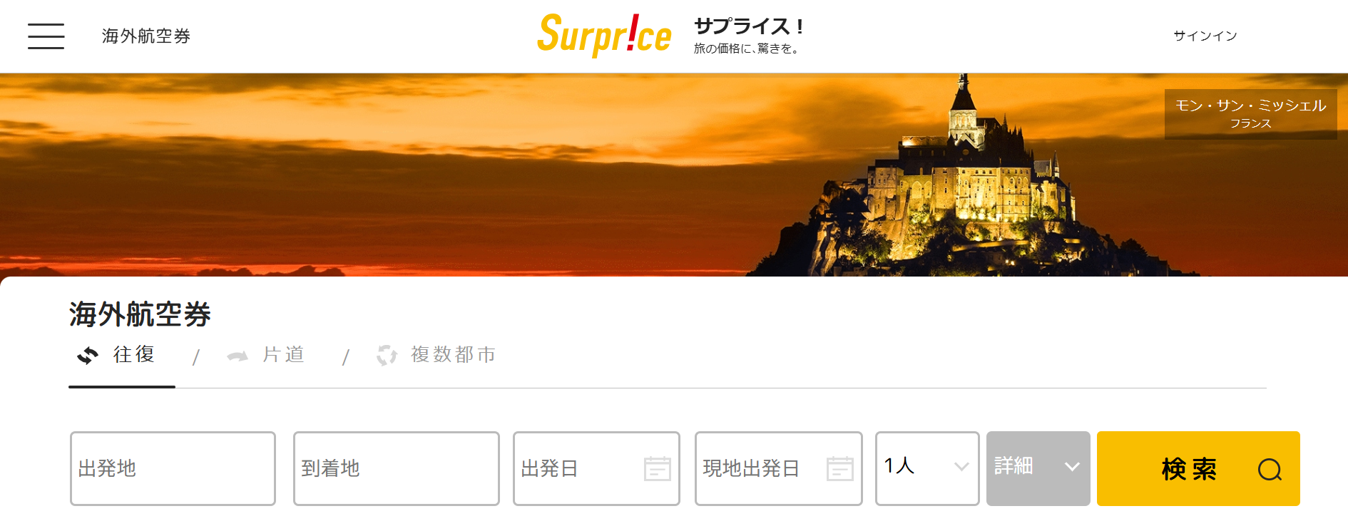 サプライスは、海外の格安航空券が予約できるサイトです。オンライン販売に特化することで中間コストを削減し、通常より安い価格で提供しています。