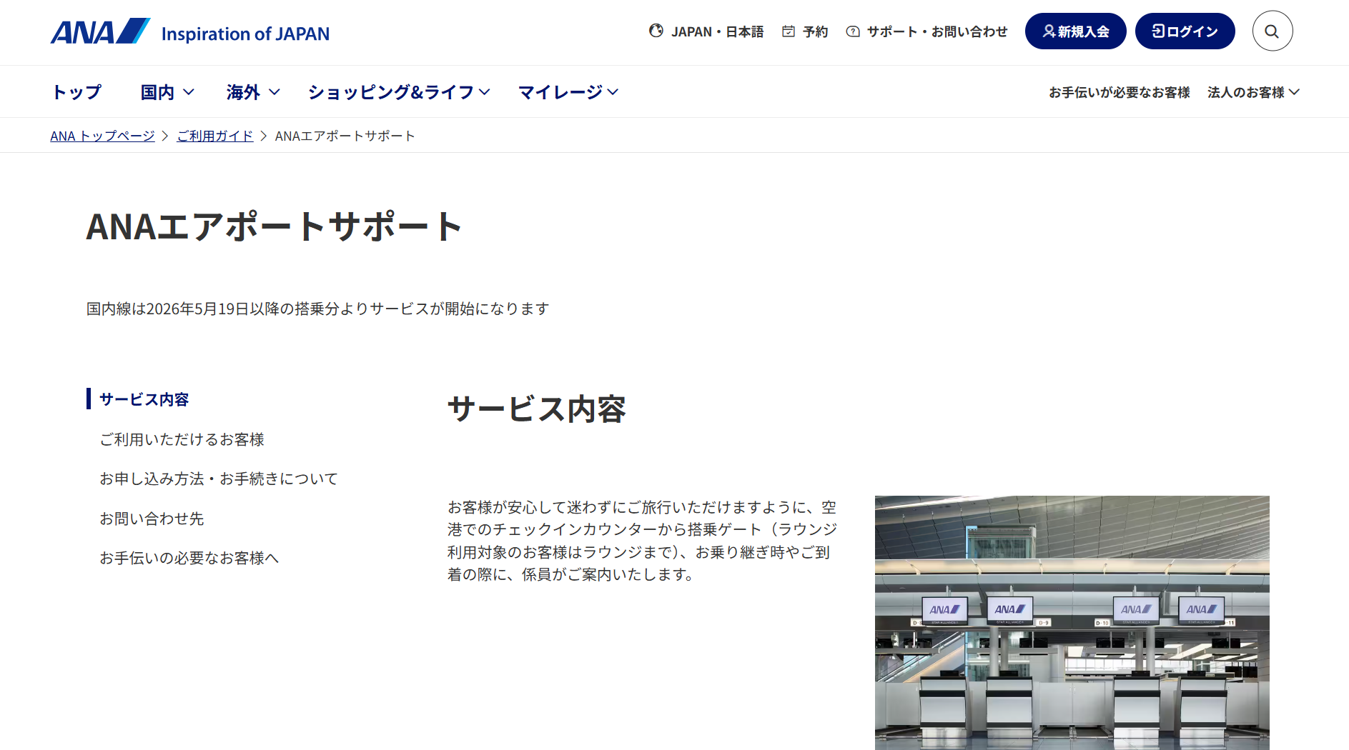 画像引用:ANAエアポートサポート|ANA