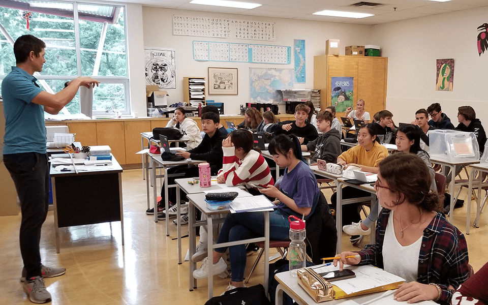 クオリカム学区には、留学生を受け入れている中等学校(セカンダリースクール)が2校あります。そのうち1校には日本人スタッフが常駐しており、もう1校にも日本語を教える教員が勤務しています。
