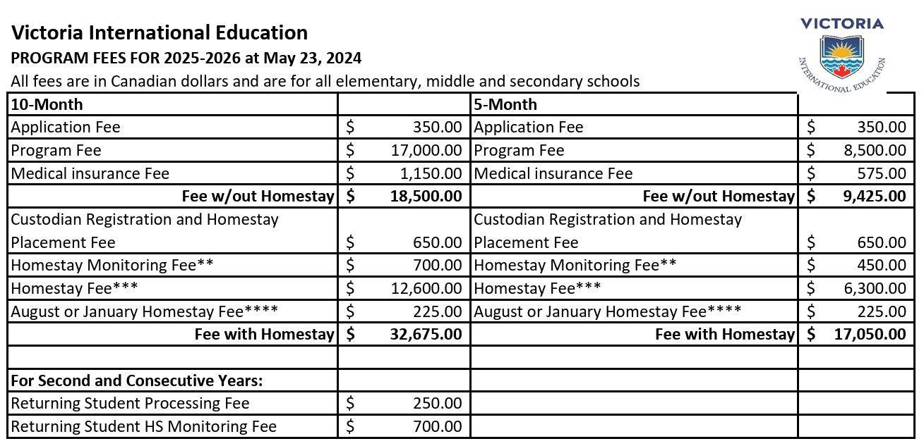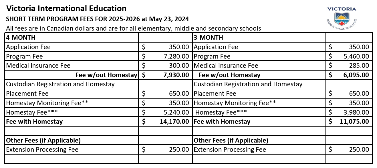 画像引用:2025/2026 PRICELIST |Greater Victoria Internatinal Student Program