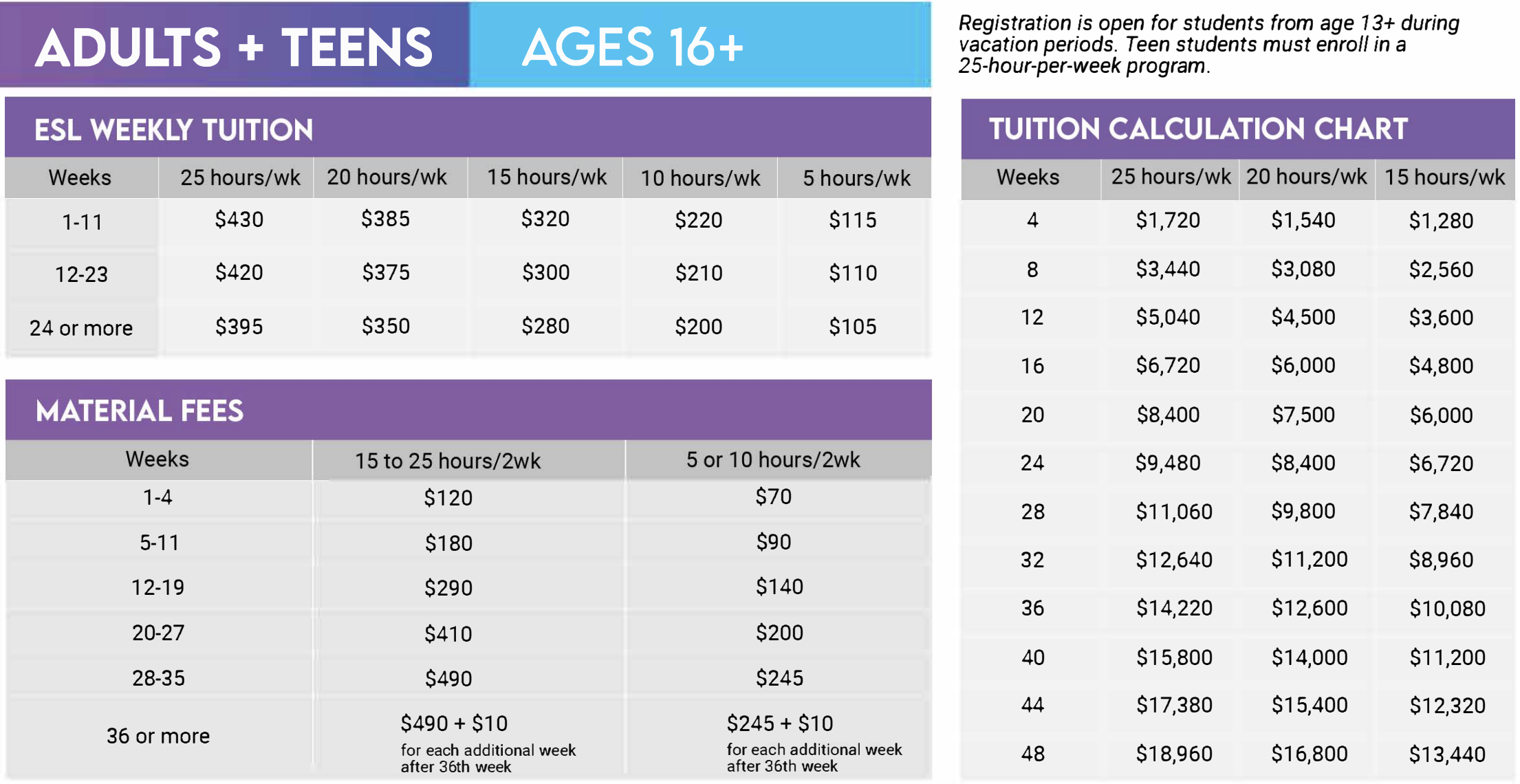 週25時間の料金で最大週29時間分のクラスを受講可能です。真剣に英語を学びたい学生におすすめのクラスです。