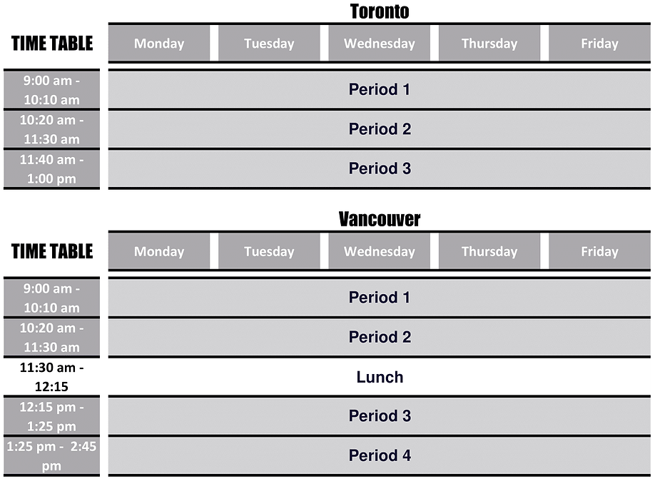 | 学生総数 | 【トロント】平均400名 【バンクーバー】150名~200名 |