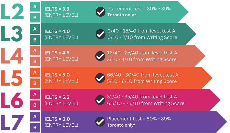 上級IELTS: SGIC アドミッション テスト 80%、または SGIC、または TOEIC 625、または TOEFL iBT 55 以上、または IELTS 5.5 以上で上中級英語レベル 6 を完了 (口頭試験が必要) 中級IELTS: SGIC 入学試験 65%、または SGIC で上中級英語レベル 4.5 を完了、または TOEIC 601、または TOEFL iBT 34 以上、または IELTS 4.5 以上 (口頭試験が必要) |