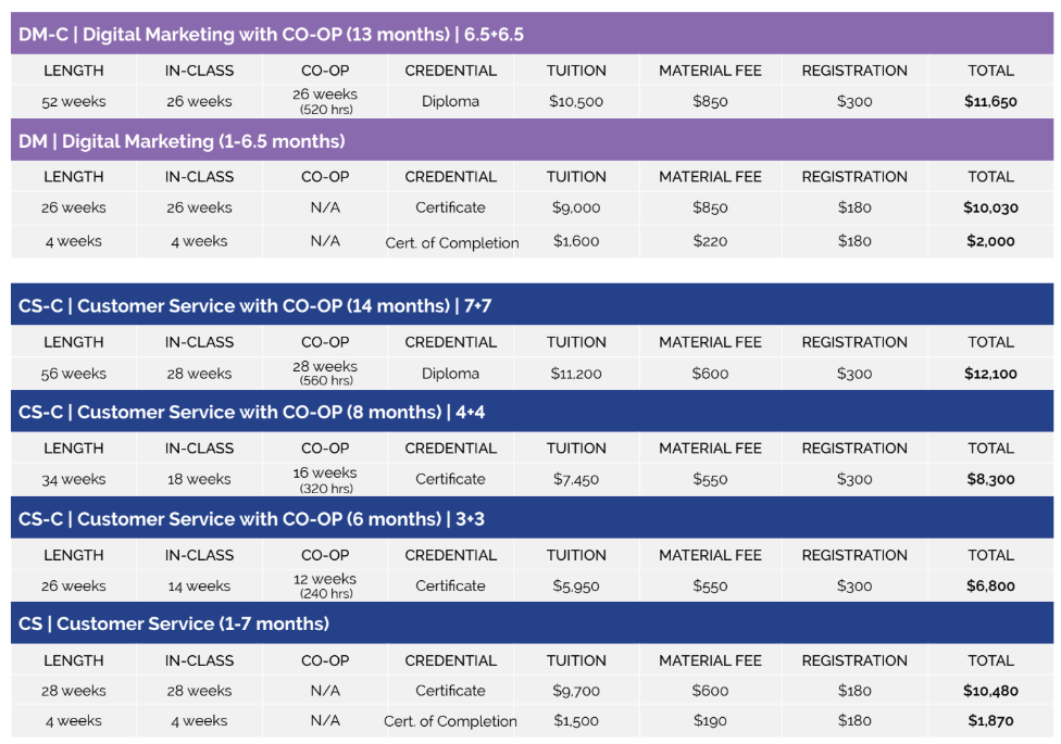 とくに、英語教授法(TESOL)やカスタマーサービスのコープ(Co-op)プログラムは、留学生から人気が高くなっています。また、最短4週間で選択した分野のサーティフケート(履修証明|Certificate)が付与され、全コースを修了するとディプローマ(修了認定|Diploma)が付与されます。