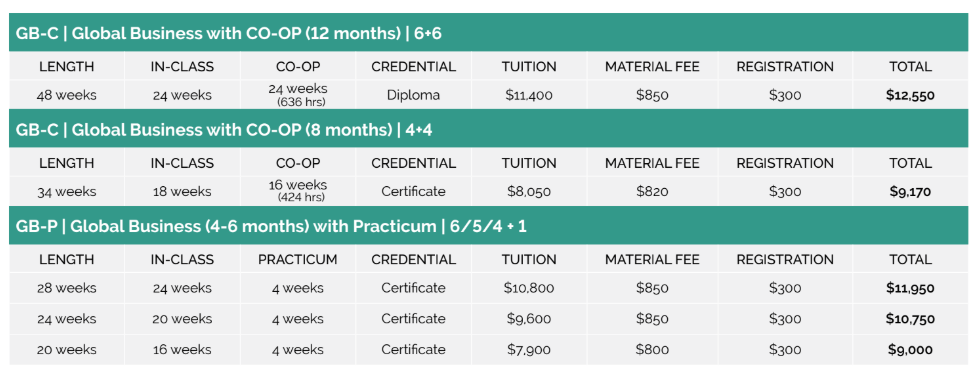 画像引用:Vancouver International College「価格表」