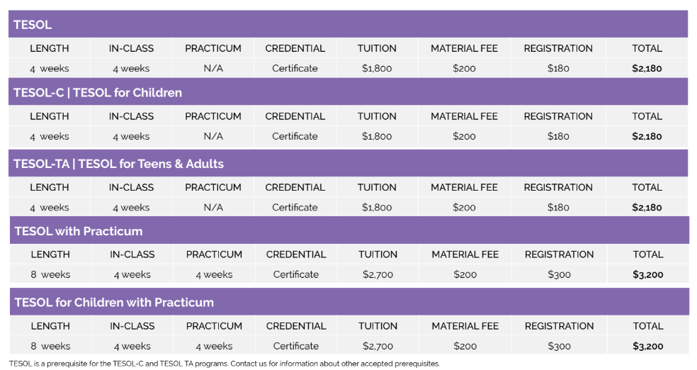 英語教授法(TESOL)プログラムの詳細情報